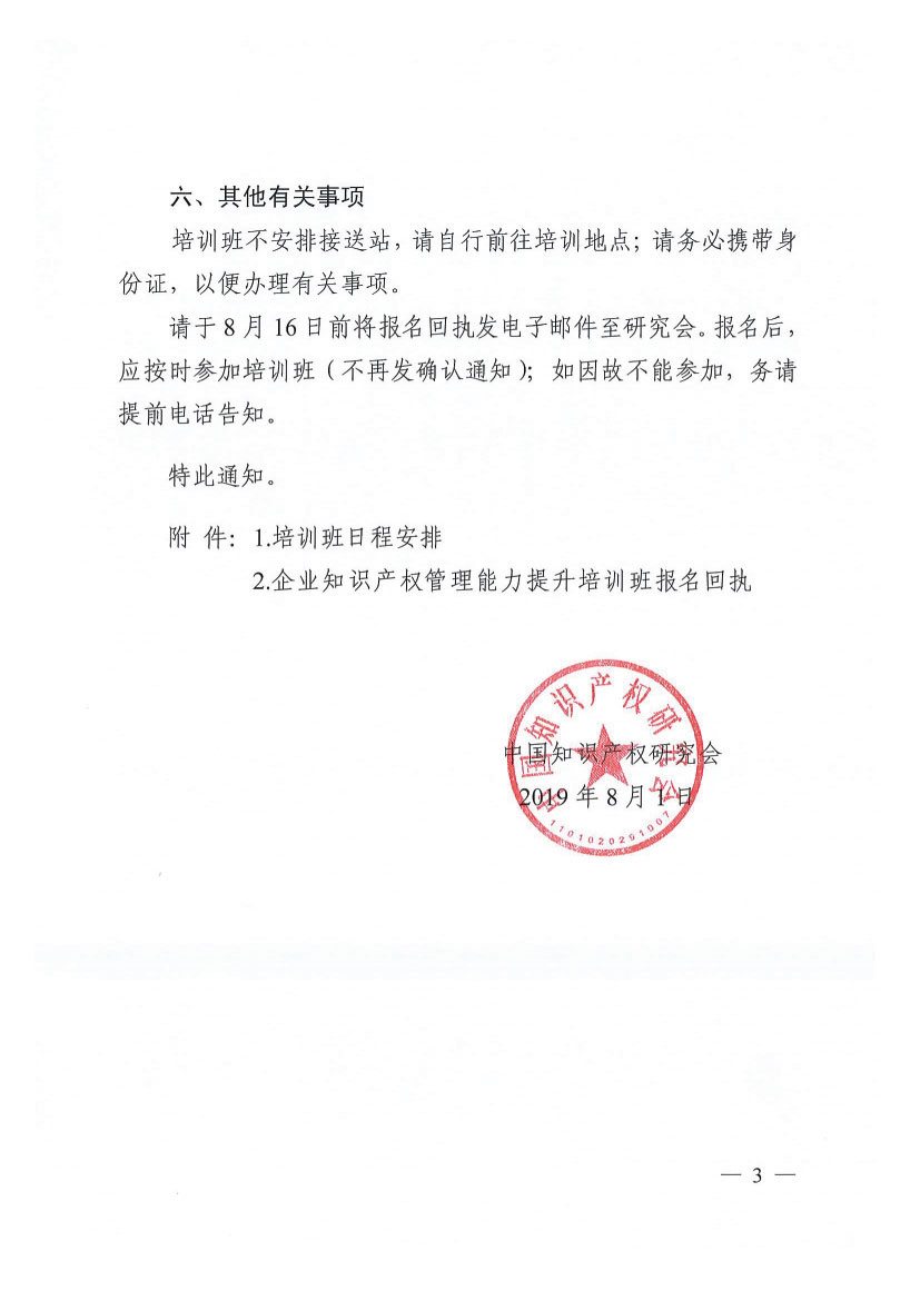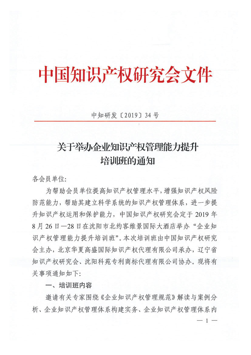 关于举办“企业知识产权管理能力提升培训班”的通知